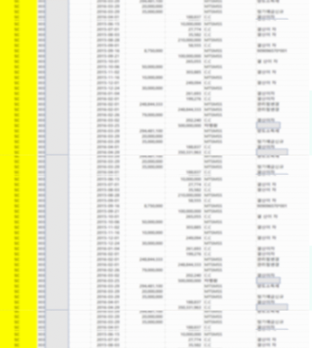 03. 10년간 금융거래내역을 엑셀로 변환하여 국세청 조사 방식화 동일하게 검토합니다.